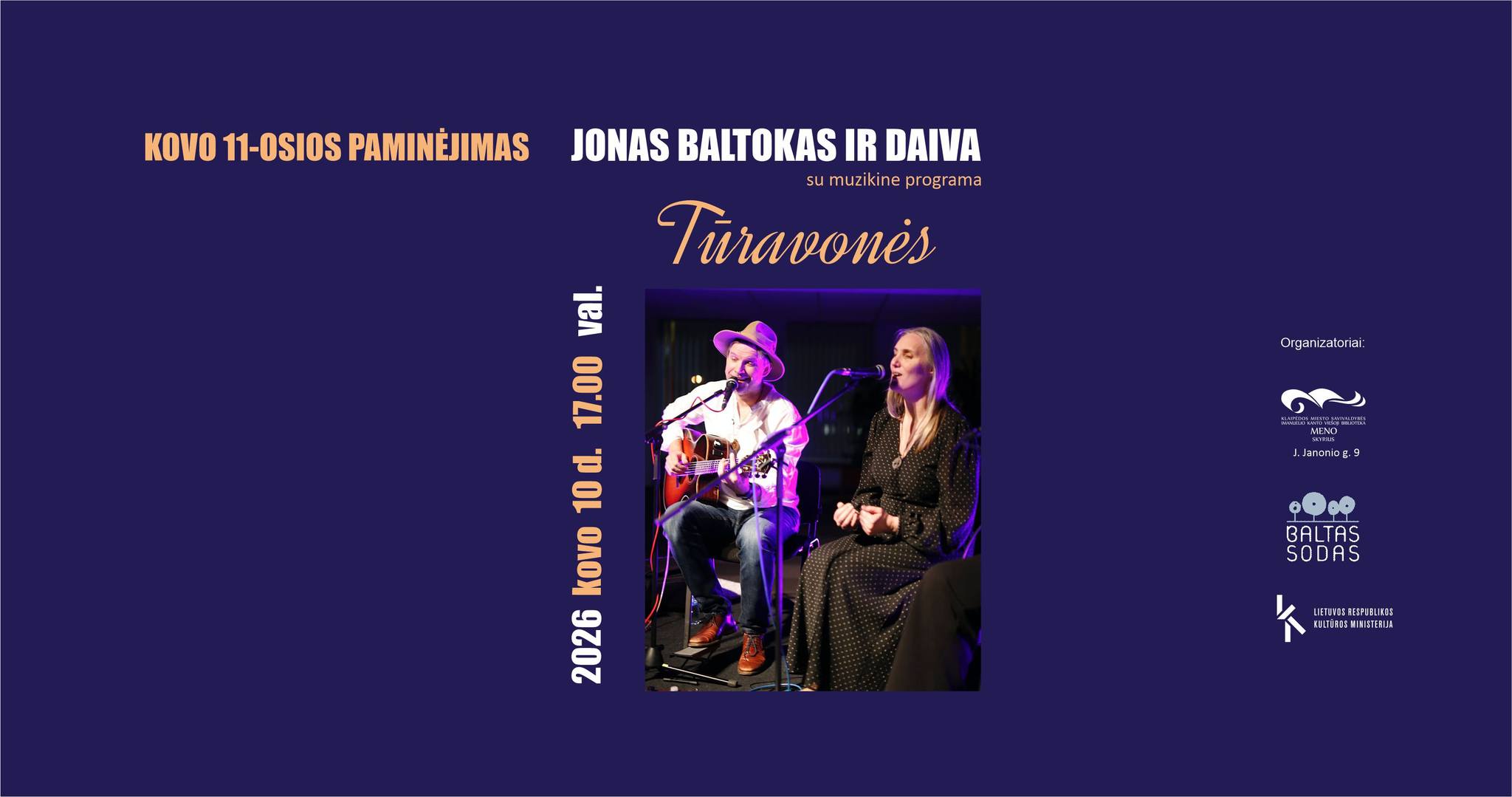 Koncertas „14 LAISVĖS DAINŲ“. Autorinę programą atliks Jonas Baltokas, Daiva Plikšnienė ir Živilė Mackevičiūtė – dainų kūrėjai ir aktoriai.